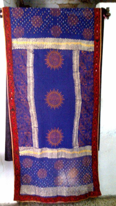 Tie Dye Block Print Veil with banjara embroidery on all 4 edges.
